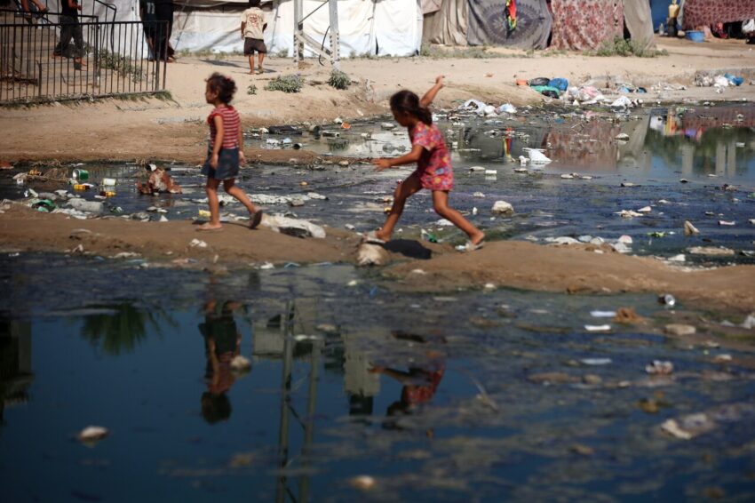 Gepubliceerd op de website van de Volkskrant. Lees het op de website. U heeft hiervoor toegang nodig om de Volkskrant te kunnen lezen. Dit artikel is in samenwerking geschreven met Tonie Mudde Bovenstaande foto: Palestijnse kinderen lopen langs een poel van rioolwater in Deir al-Balah (Centraal-Gaza). Beeld NurPhoto via Getty Images